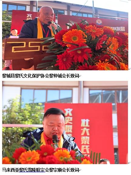 参天之木,必有其根;怀山之水,必有其源。我们身上流淌着相同的血脉,承袭着共同的基因。无论我们身在何处,从事何种事业,黎氏这个古黎国的姓氏,始终是我们最深沉的羁绊和最骄傲的徽章。今日的相聚,是对先祖开基创业的深切缅怀;是对家族优良传统的自觉传承;更是我黎氏一族团结凝聚、共谋发展的崭新起点。