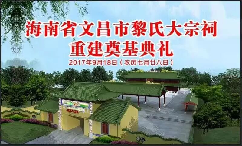 文昌黎氏大宗祠建设占地20多亩,它将采用明清两代建筑风格建设,重现昔日我黎氏家族风彩,又与时俱进建设成为新农村的典范。成为我黎氏的信仰之地、文化之地、团圆之地。